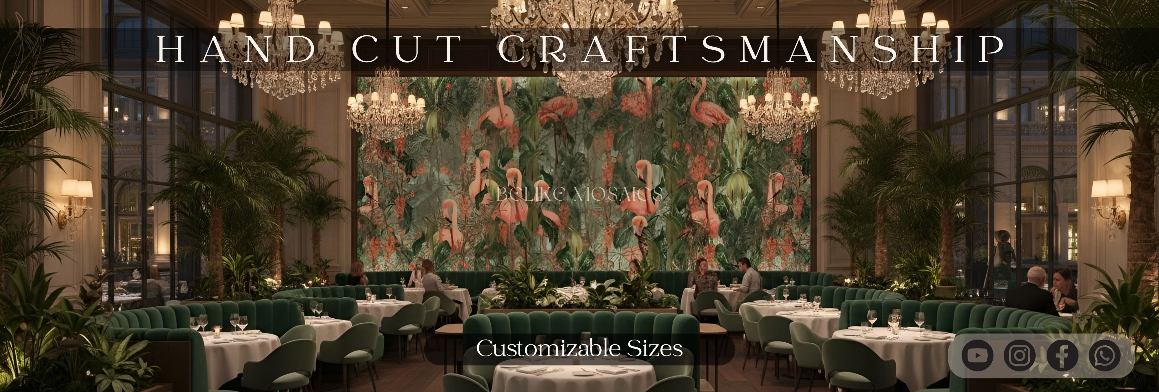 Wunderschönes Modernes Flamingo-Regenwald Handgeschnittenes Glasmosaik-Wandbild Umweltfreundliche Anspruchsvolle Handwerkskunst Atemberaubendes Luxuriöses Element