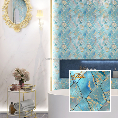 Azulejo de mosaico de aluminio azul océano elegante hoja de oro patrón dorado característica elegante pared para decoración del hogar fachada acento Aqua elegante